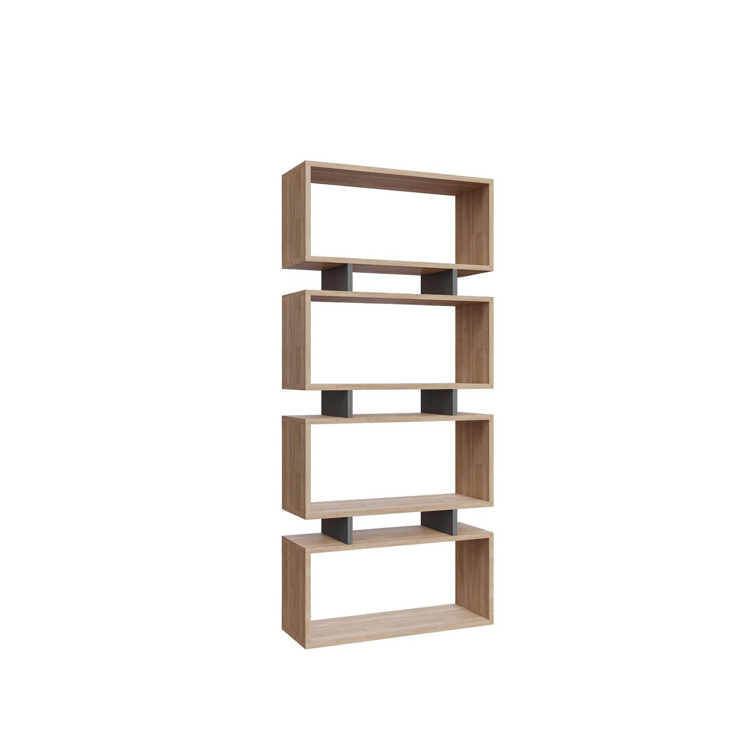 Bibliothèque à 4 compartiments de rangement - Dimensions : 72 x 25 x 161 cm - Gris anthrcite et beige - 18 mm d'épaisseur - Fixation murale possible.