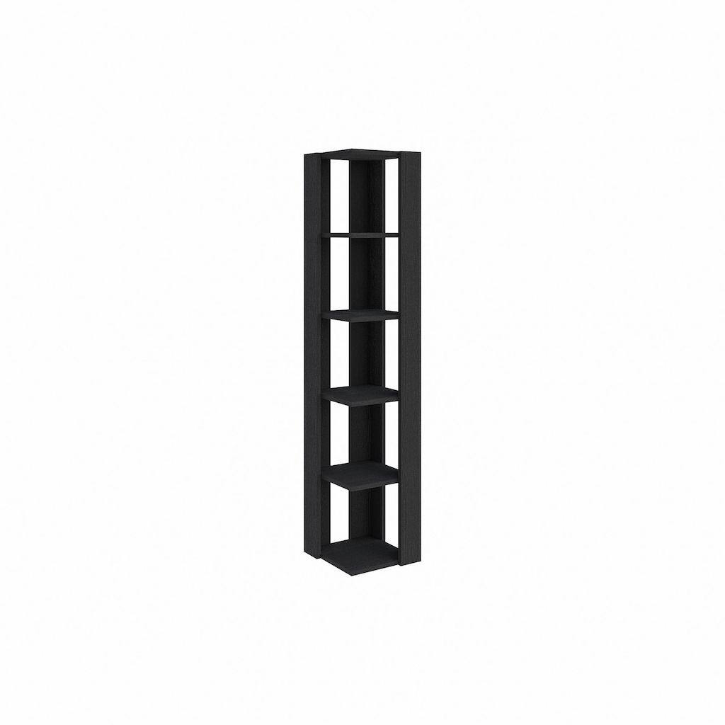 Bibliothèque avec 5 étagères - Dimensions : 32 x 32 x 161 cm - Noir - Épaisseur : 18 mm - Bois - Capacité de charge : 20 kg - Hauteur entre les étagères : 30 cm.