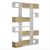 Bibliothèque moderne, blanche et chêne, 120 x 171 x 27 cm. Panneaux de particules mélaminés, 18 mm d'épaisseur. Nombreuses étagères, fixation murale, capacité de charge 25 kg. Rangement élégant pour la maison et le bureau..Bibliothèque en bois Niho Donnez du caractère à votre décoration avec ce bib