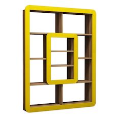 Bibliothèque en bois Orkide - 108 x 21 x 140 cm - Noyer, Jaune