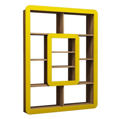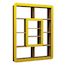 Bibliothèque en bois Orkide - 108 x 21 x 140 cm - Noyer, Jaune – 10 étagères, 10 niches, couleur noyer, jaune.