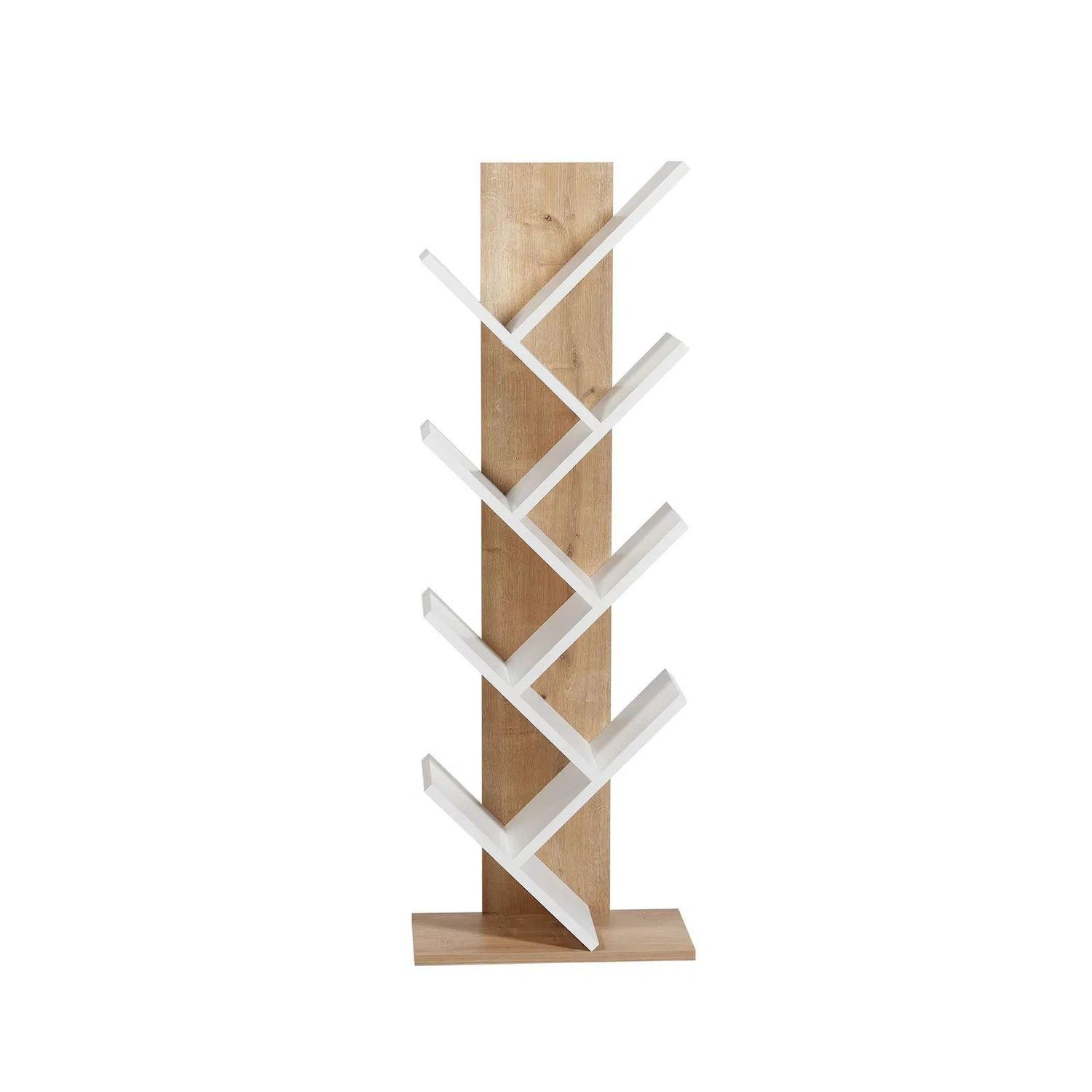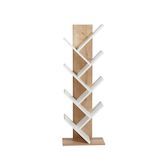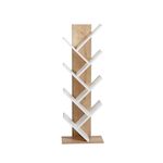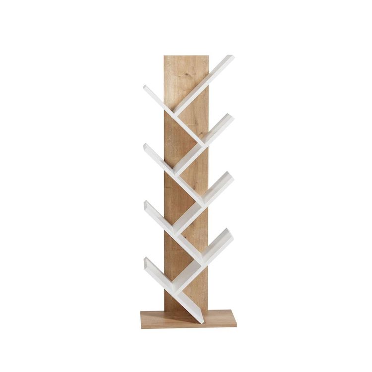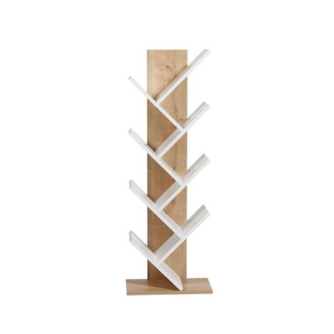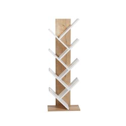 Bibliothèque en bois Tuval 066 - 46 x 22 x 129 cm - Chêne, Blanc – 7 étagères, couleur chêne, blanc.