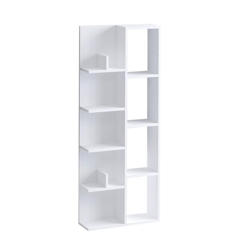 Bibliothèque en bois Viva - 60 x 18 x 150 cm - Blanc – 10 étagères, 8 niches, couleur blanc.