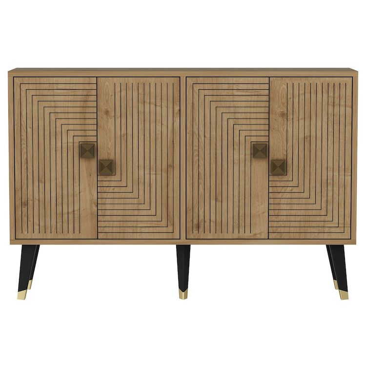 Buffet en bois Ahart - 120 x 30 x 80 cm - Chêne SaphirOr – 4 portes Conçu pour offrir praticité et robustesse, ce modèle s'intègre facilement dans tout intérieur et répond aux besoins du quotidien en garantissant confort d'usage..