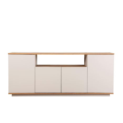 Buffet bas moderne - Dimensions : 180 x 44 x 75 cm - Bois - Epaisseur : 18 mm - Beige - 4 portes à ouvertures par simple pression.Buffet en bois Arista Donnez du caractère à votre décoration avec ce buffet pensé pour allier style et praticité. Son design soigné et ses finitions élégantes s'intègren