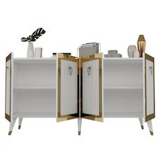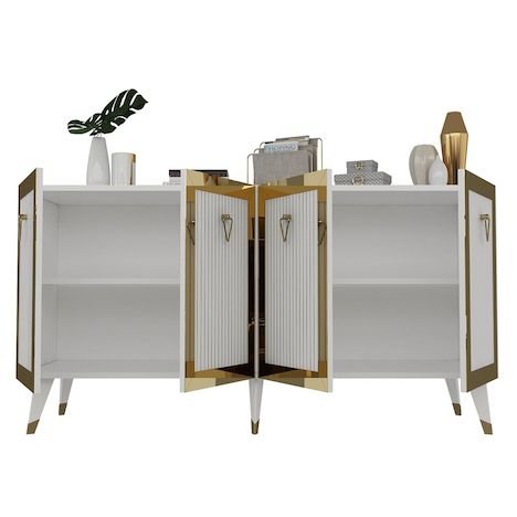 Buffet en bois Bare - 150 x 40 x 80 cm - Doré – 4 portes Conçu pour offrir praticité et robustesse, ce modèle s'intègre facilement dans tout intérieur et répond aux besoins du quotidien en garantissant confort d'usage..