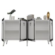 Buffet en bois Bare - 150 x 40 x 80 cm - Gris – 4 portes Conçu pour offrir praticité et robustesse, ce modèle s'intègre facilement dans tout intérieur et répond aux besoins du quotidien en garantissant confort d'usage..