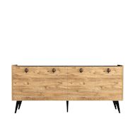 Buffet bas - Dimensions : 180 x 40 x 79 cm - Marron - Bois - 4 portes avec poignées - 4 étagères.