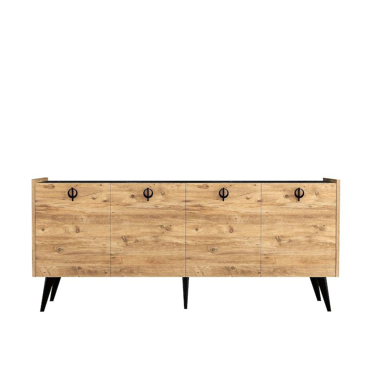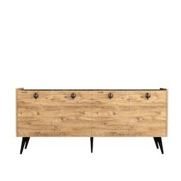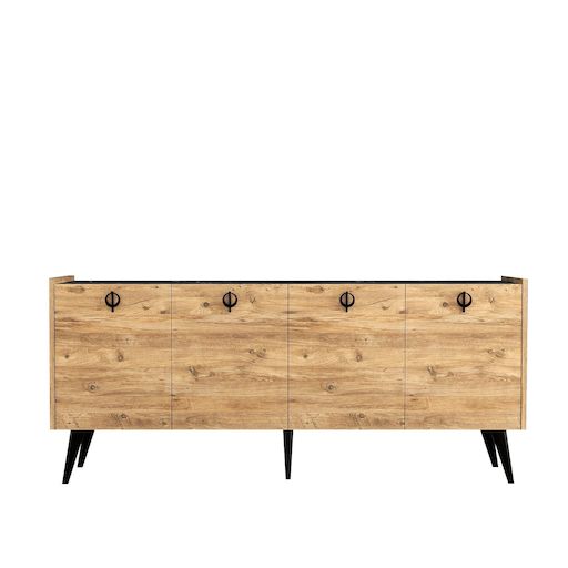 Buffet bas - Dimensions : 180 x 40 x 79 cm - Marron - Bois - 4 portes avec poignées - 4 étagères.Buffet en bois Kaya Donnez du caractère à votre décoration avec ce buffet pensé pour allier style et praticité. Son design soigné et ses finitions élégantes s'intègrent facilement dans une ambiance mode