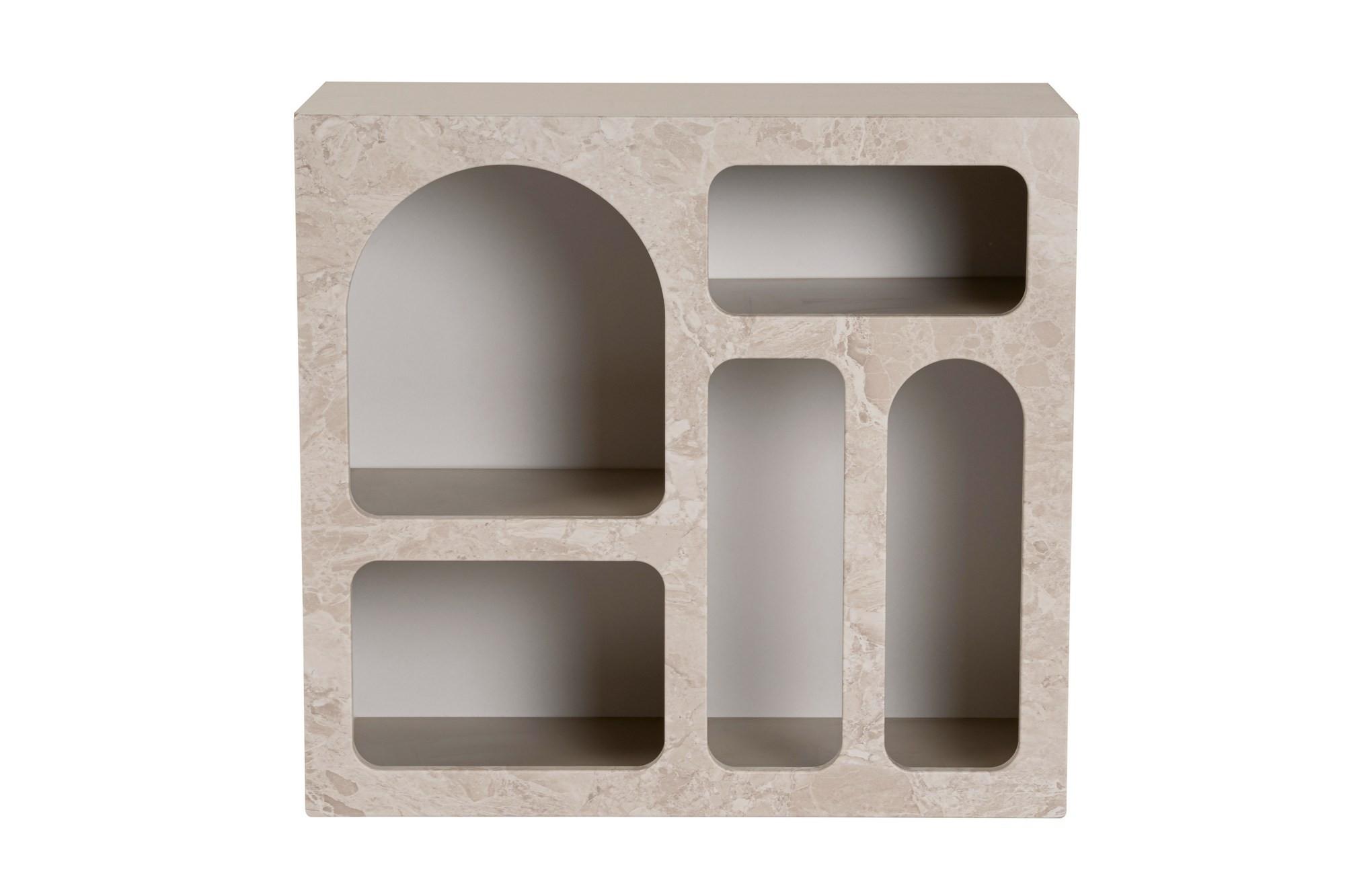 Buffet à niches arquées - Dimensions : 80 x 37 x 74 cm - Travertin - Bois - Epaisseur 18 cm.