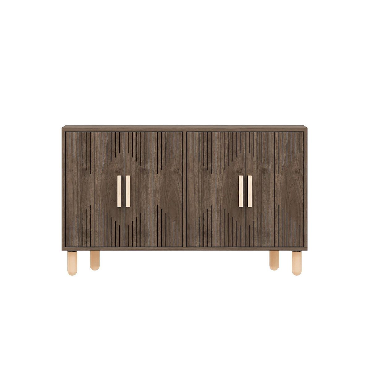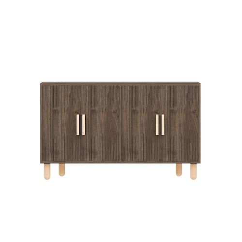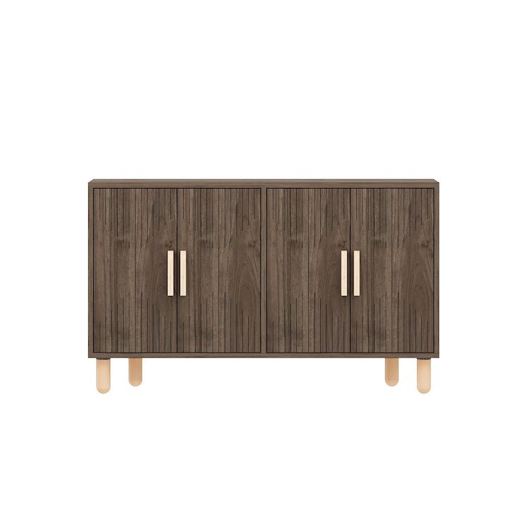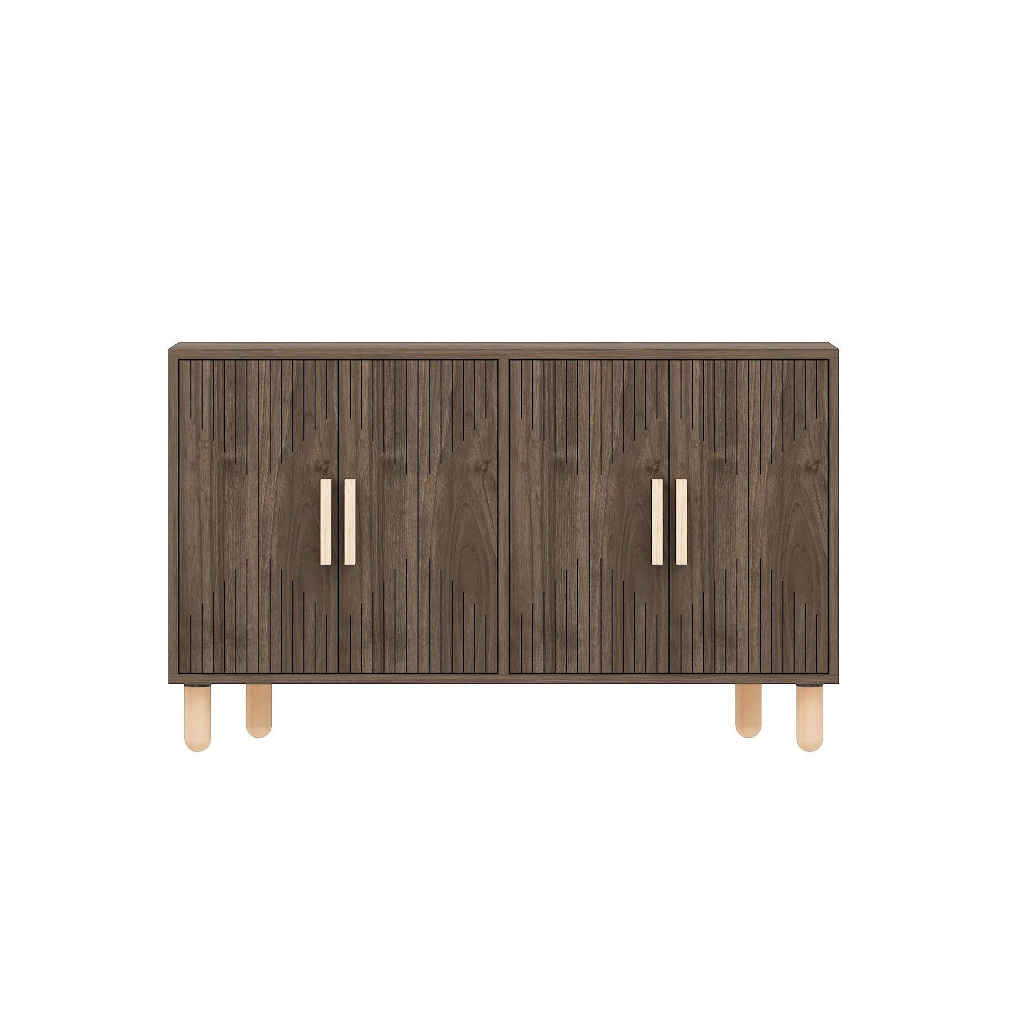 Buffet moderne - Dimensions : 120 x 30 x 74 cm - Bois - Marron - Epaisseur 18 mm - 4 portes avec poignées.