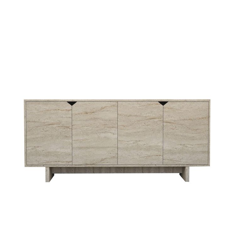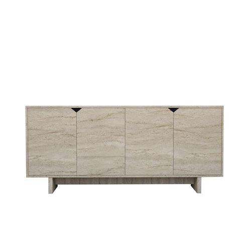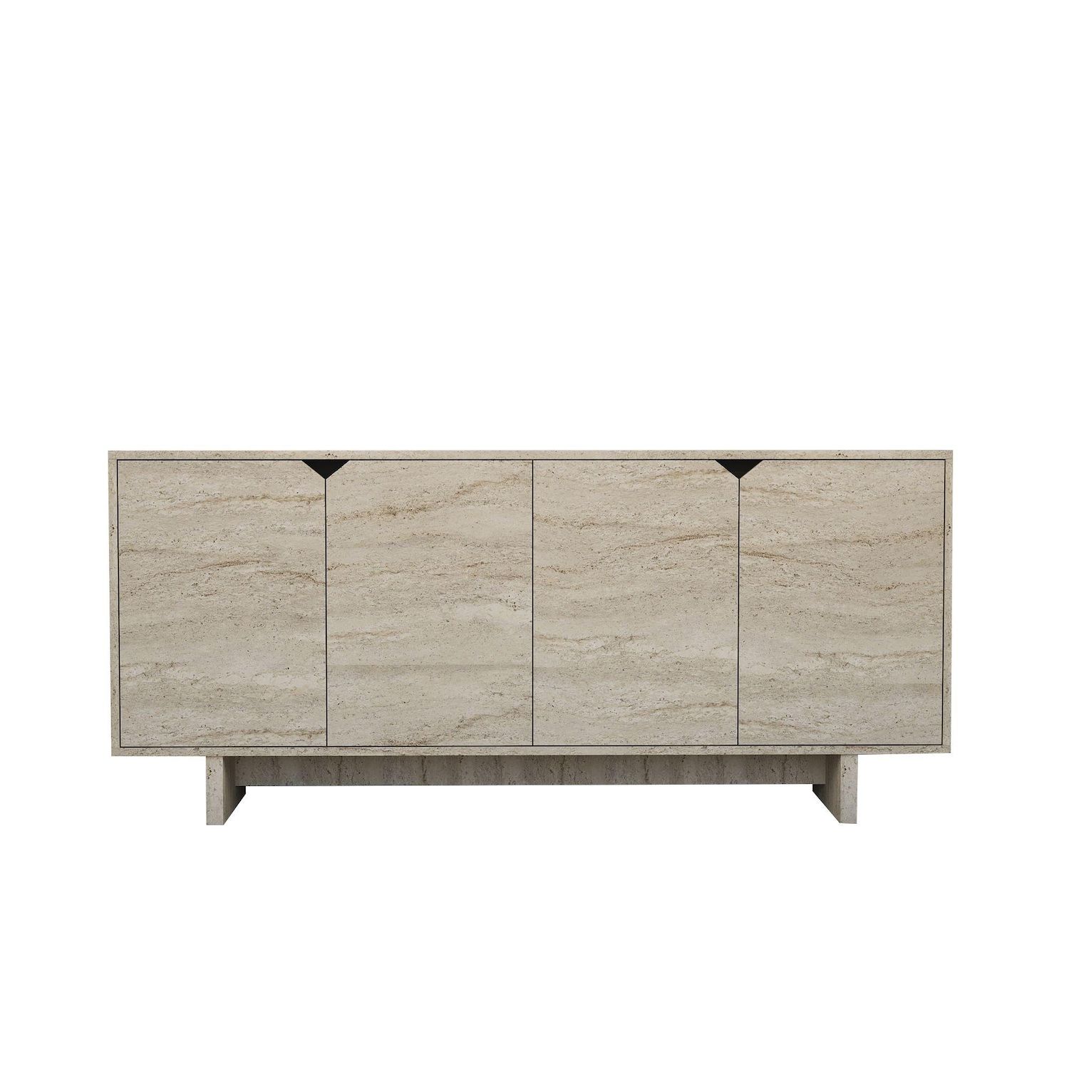 Buffet en bois - Dimensions : 180 x 40 x 81 cm - Fixation murale possible - 4 portes - 4 étagères - Travertin.Buffet en bois Turan Donnez du caractère à votre décoration avec ce buffet pensé pour allier style et praticité. Son design soigné et ses finitions élégantes s'intègrent facilement dans une