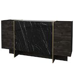 Buffet en bois Veyron - 180 x 46 x 75 cm - NoirOr – 3 portes Conçu pour offrir praticité et robustesse, ce modèle s'intègre facilement dans tout intérieur et répond aux besoins du quotidien en garantissant confort d'usage. .Style: Moderne - Nouveauté, Glamour, Marbre