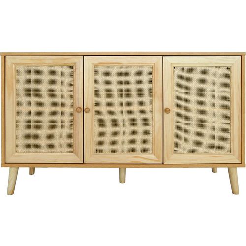 Buffet scandinave en bois style cannage Neuille - 120 x 40 x 71.5 cm - 3 portes - 5 pieds.