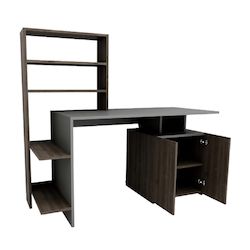 Bureau en bois Melis - 146 x 60 x 128 cm - NoyerAnthracite – 4 étagères, 1 porte Conçu pour offrir praticité et robustesse, ce modèle s'intègre facilement dans tout intérieur et répond aux besoins du quotidien en garantissant confort d'usage..