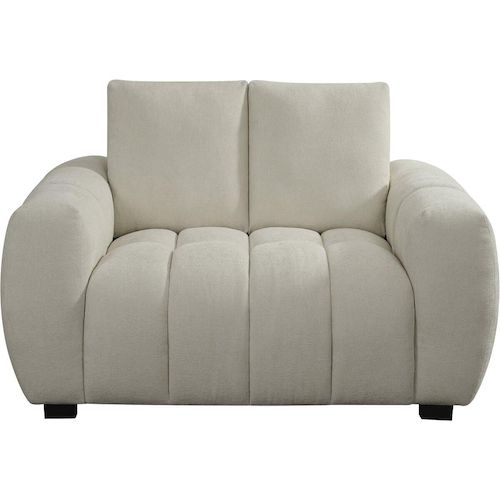 Canapé 2 places en tissu chenille Cambon - Canapé fixe de style contemporain - Beige - 105 x 188 x 81 cm.