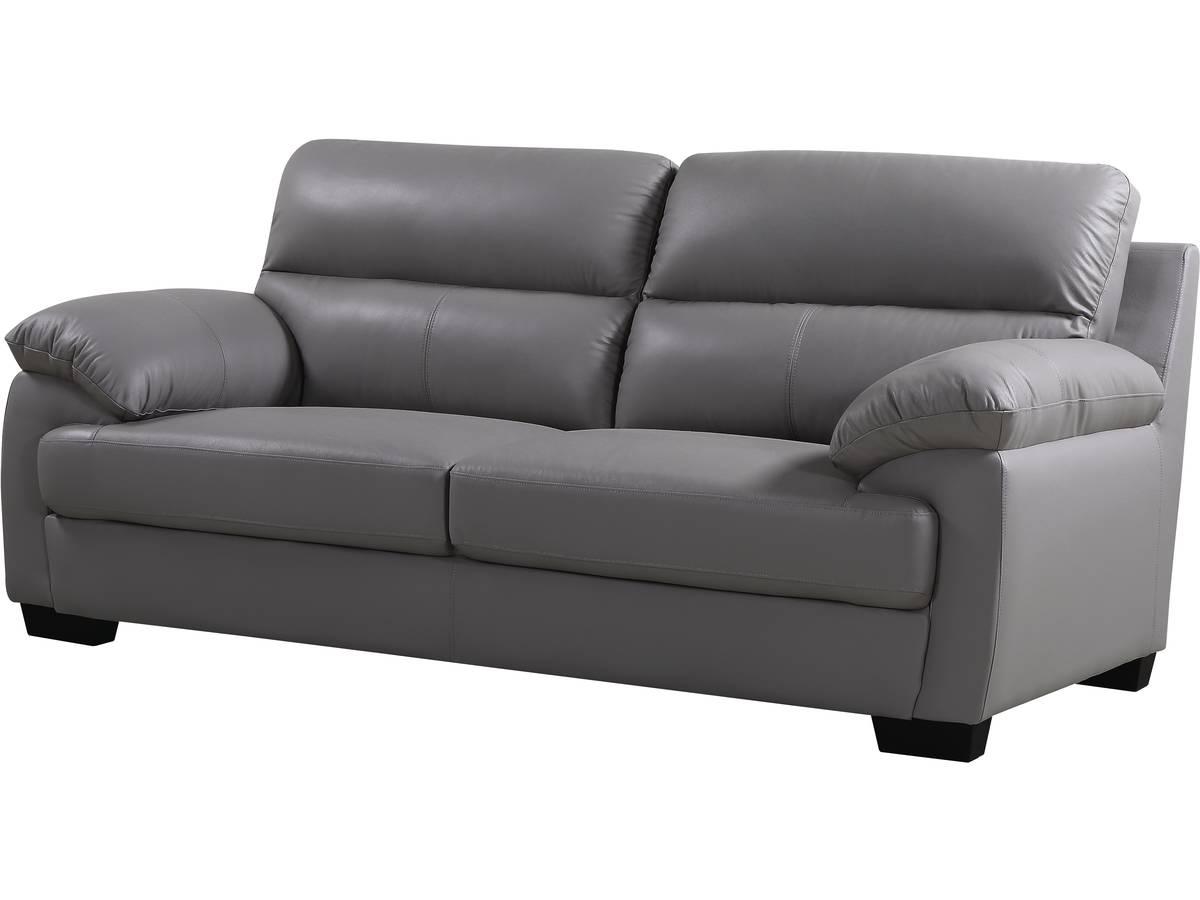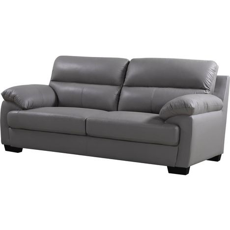 Canapé cuir et PVC Cardiff - 205 x 92 x 93 cm - 3 places - Gris clair