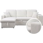 Canapé d'angle convertible et reversible Axel - bouclette - Canapé: 233 x 146 x 86 cm - Couchage: 192 x 136 x 44 cm - Espace de stockage (méridienne) + étagère.