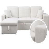 Canapé d'angle convertible et reversible 'Axel' - bouclette - Canapé: 233 x 146 x 86 cm - Couchage: 192 x 136 x 44 cm - Espace de stockage (méridienne) + étagère