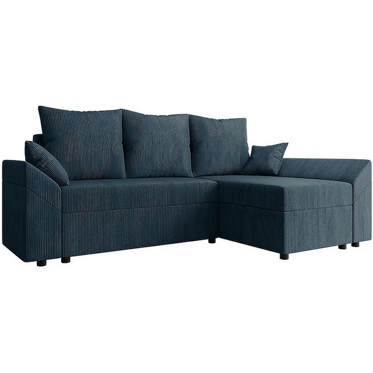 Canapé d'angle convertible avec coffre Vaugirard en velours côtelé - 3 places - Bleu