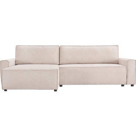 Canapé convertible avec angle  Montaigne  - Dimensions : 282 x 153 x 93 cm - Espace de stockage : 138 x 61 x 22 cm - Poids : 87,6 kg - Fonction convertible - Doublure amovible - Lavable - 4/5 places - Tissu texturé tendance - Beige..