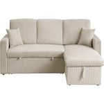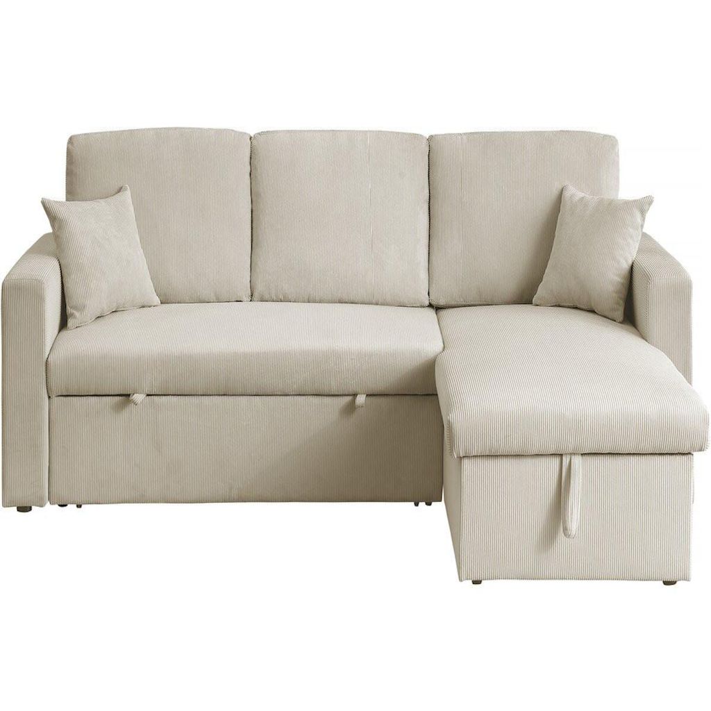Canapé d'angle convertible en velours côtelé Alain - 3 places - Beige