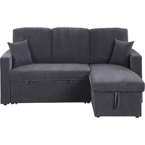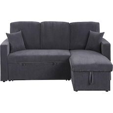 Canapé d'angle convertible / réversible avec coffre Alain - Velours côtelé - Canapé: 221 x 145 x 85 cm - Couchage: 192 x 137 x 43.5 cm - Espace de stockage (méridienne).