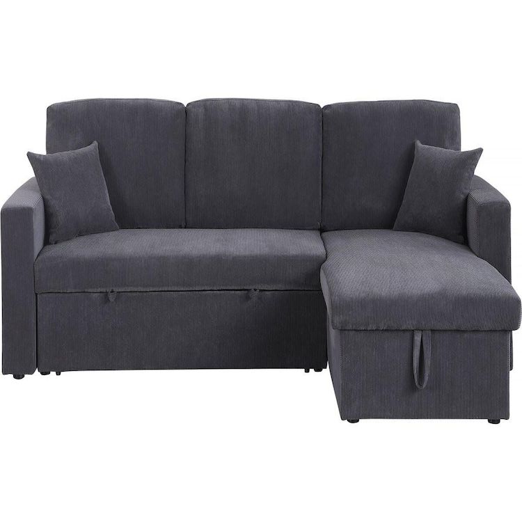 Canapé d'angle convertible en velours côtelé Alain - 3 places - Gris