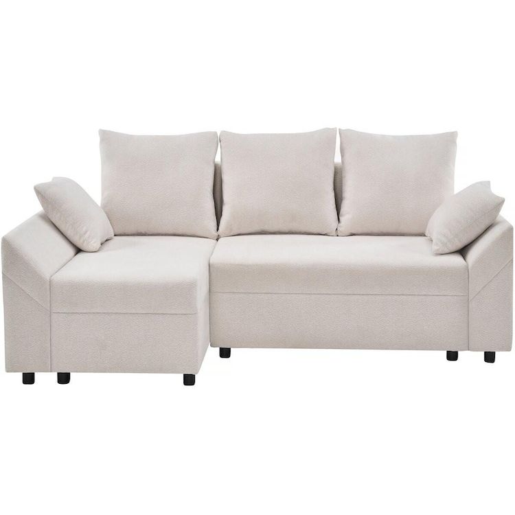 Canapé d'angle reversible et convertible en tissu texturé Vaugirard II - 3 places - Beige - 244 x 138 x 82 cm -.