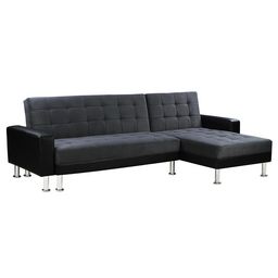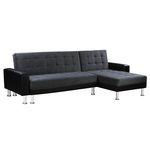 Canapé d'angle convertible et réversible 'Théo' - 4 places - Noir / Gris - Dimensions : 258 x 82/147 x 82 cm - Revêtement en polyester - Structure en bois d'eucalyptus et en contreplaqué