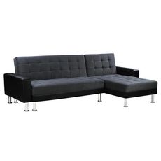 Canapé d'angle convertible et réversible Théo - 4 places - Noir / Gris - Dimensions : 258 x 82/147 x 82 cm - Revêtement en polyester - Structure en bois d'eucalyptus et en contreplaqué.