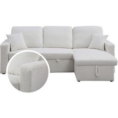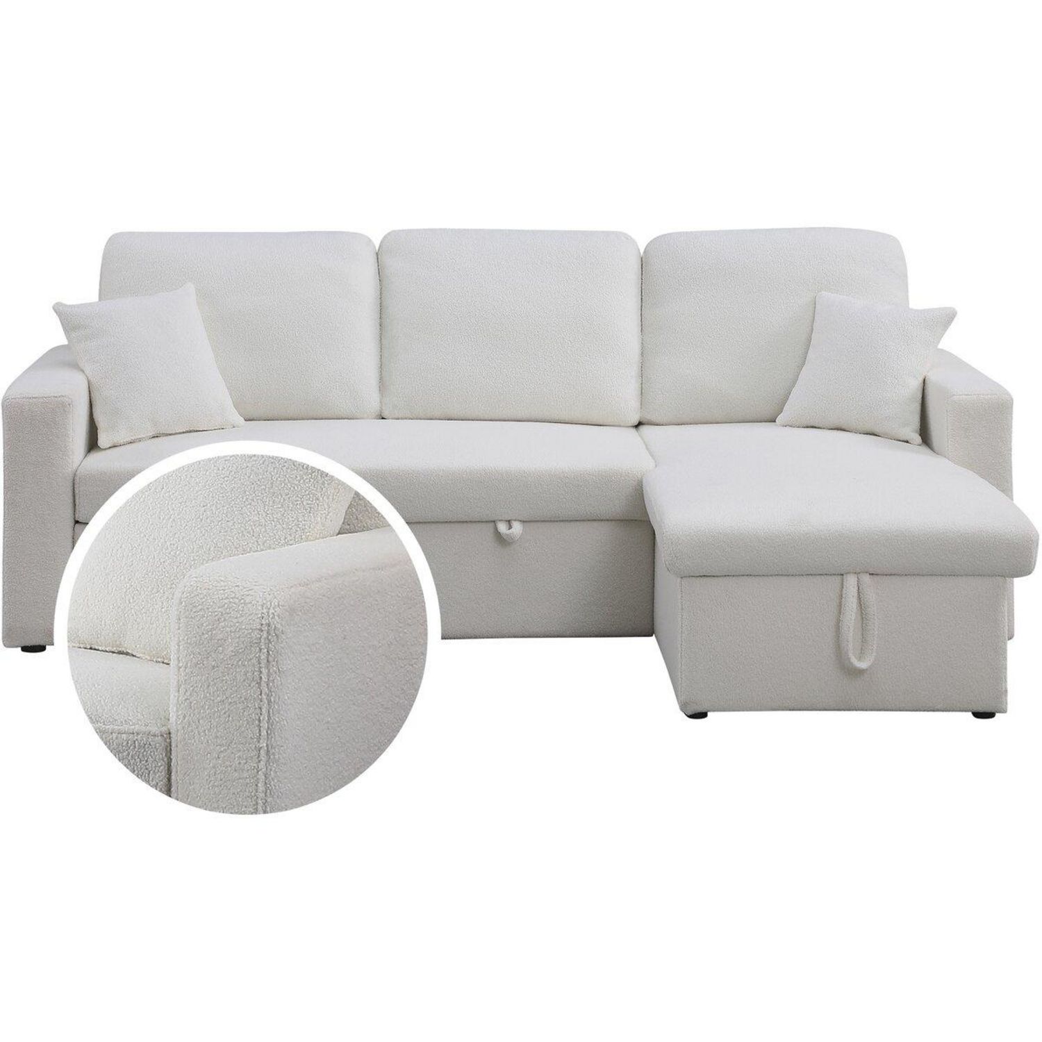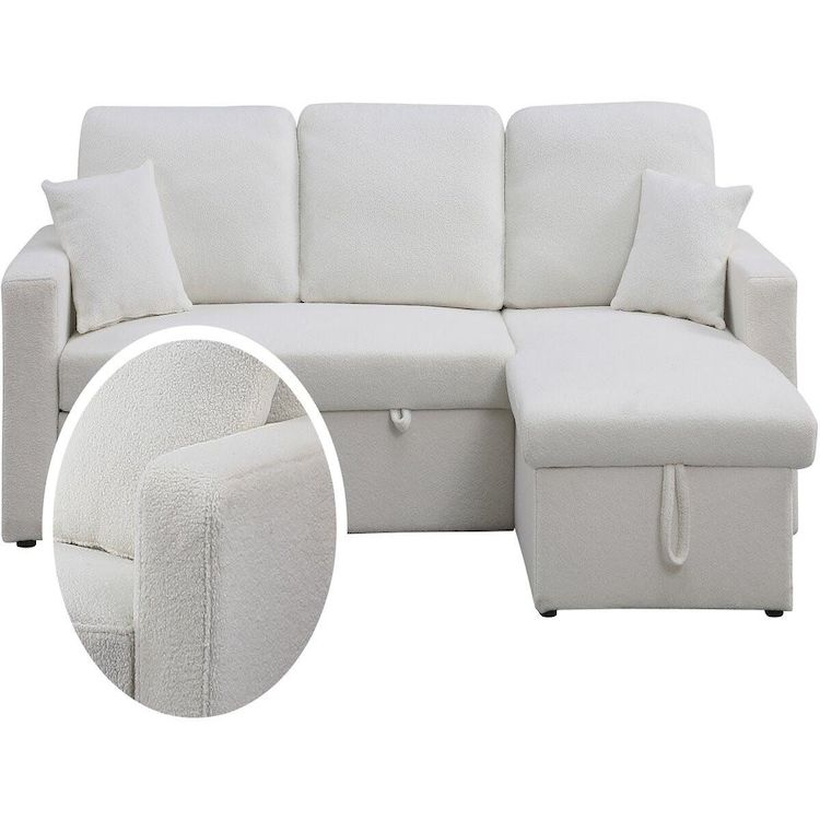 Canapé d'angle convertible/reversible avec coffre Alain - 3 places - Bouclettes - Blanc
