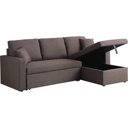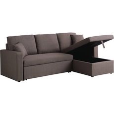 Canapé d'angle convertible  Alain  - 3 places - Taupe - Lin - Canapé: 221 x 145 x 85 cm - Couchage: 192 x 137 x 43.5 cm - Espace de stockage (méridienne).