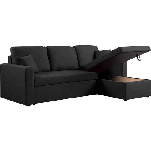 Canapé d'angle convertible/ réversible avec coffre Alain II - 3 places - Noir