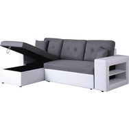 Canapé d'angle convertible 'Axel' - Lin et semi-polyuréthane - Canapé: 233 x 146 x 86 cm - Couchage: 192 x 136 x 44 cm - Espace de stockage (méridienne) + étagère - Blanc/Gris