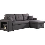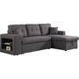 Canapé d'angle convertible 'Axel' - Canapé: 233 x 146 x 86 cm - Couchage: 192 x 136 x 44 cm - Lin - Gris - Espace de stockage (méridienne) + étagère