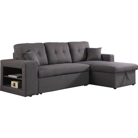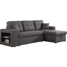 Canapé d'angle convertible Axel - Canapé: 233 x 146 x 86 cm - Couchage: 192 x 136 x 44 cm - Lin - Gris - Espace de stockage (méridienne) + étagère.
