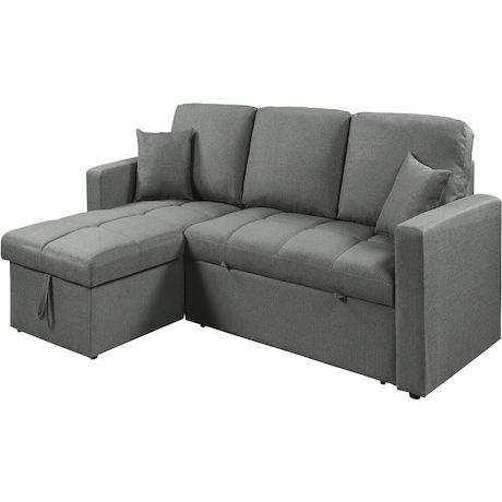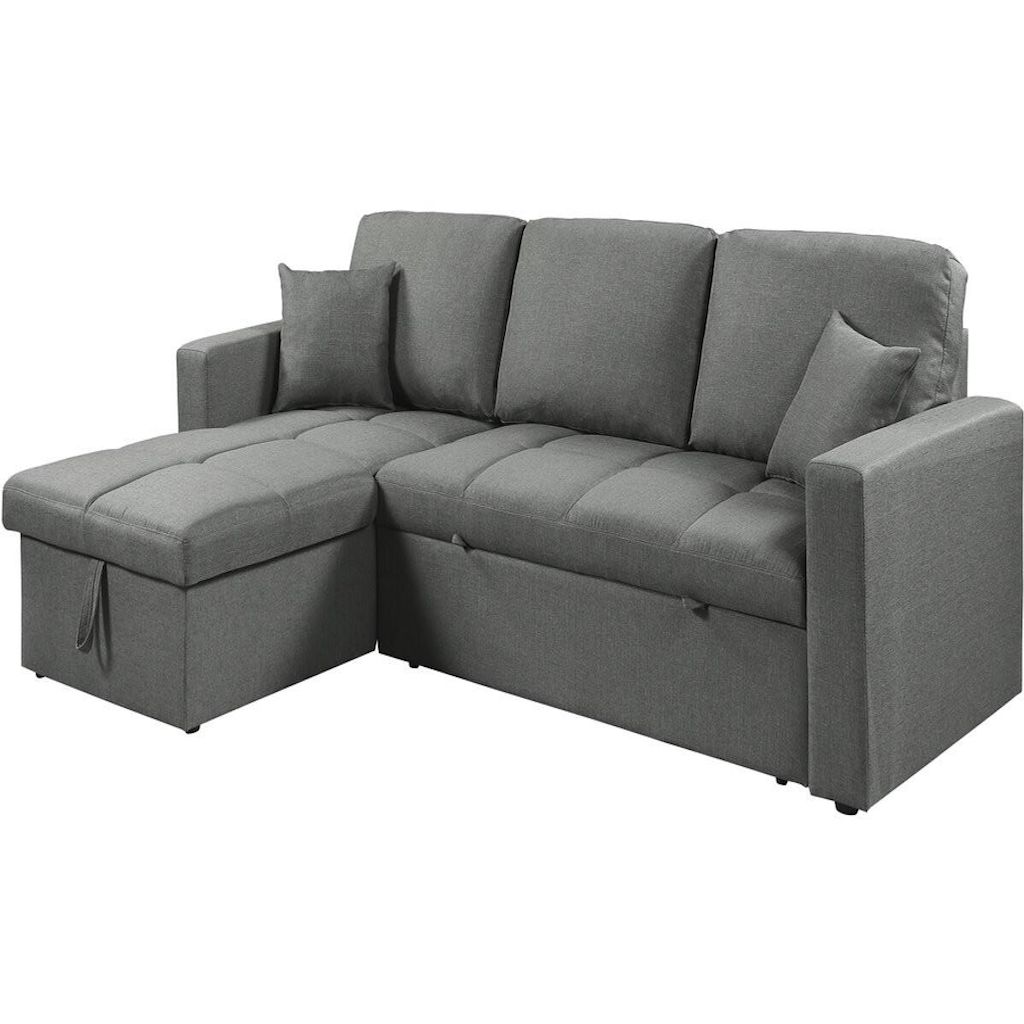 Canapé avec angle réversible Alain - Fonction convertible - Dimensions canapé : 220 x 81 x 85 cm - Dimensions canapé déplié : 220 x 145 x 85 cm - Dimensions de l'angle : 117 x 72 x 43 cm - Coffre de rangement intégré - Style bubble - Gris.Canapé d'angle convertible/réversible style bubble Alain