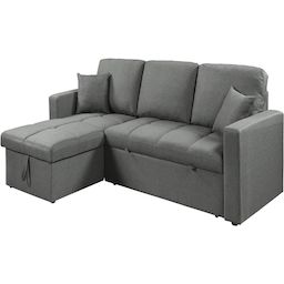 Canapé avec angle réversible Alain - Fonction convertible - Dimensions canapé : 220 x 81 x 85 cm - Dimensions canapé déplié : 220 x 145 x 85 cm - Dimensions de l'angle : 117 x 72 x 43 cm - Coffre de rangement intégré - Style bubble - Gris.