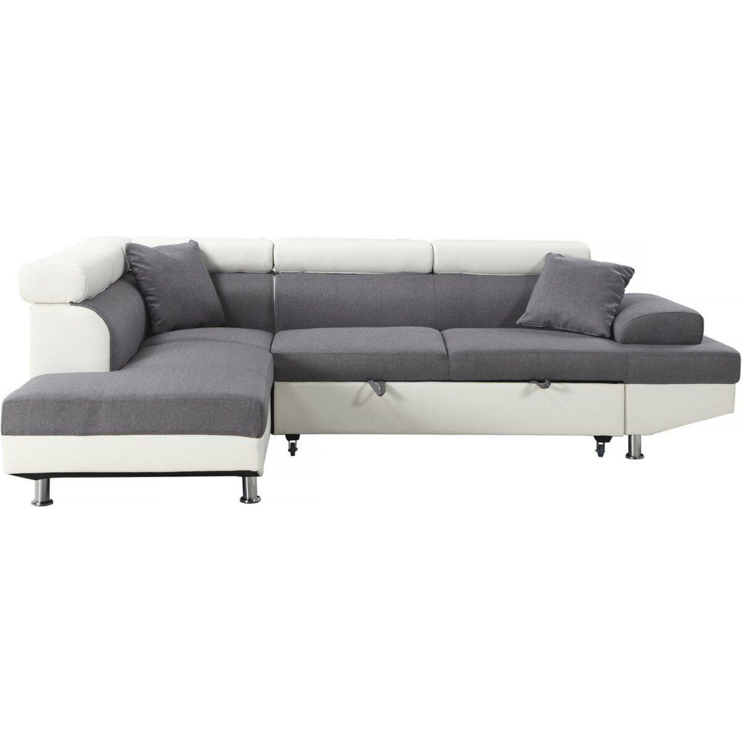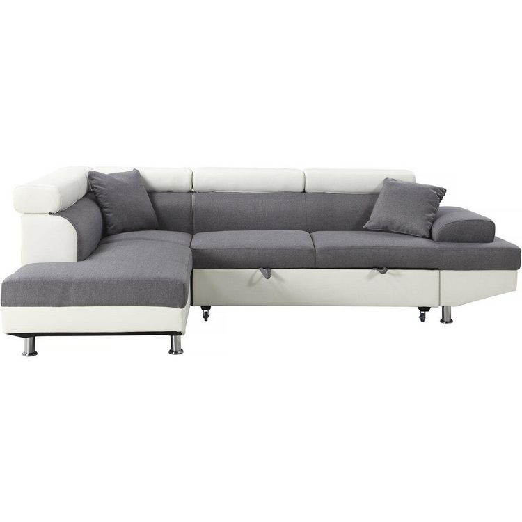 Canapé d'angle convertible Sophia luxe - 265 x 190.5 x 80/91 cm - Blanc / Gris - 5 places - Angle gauche