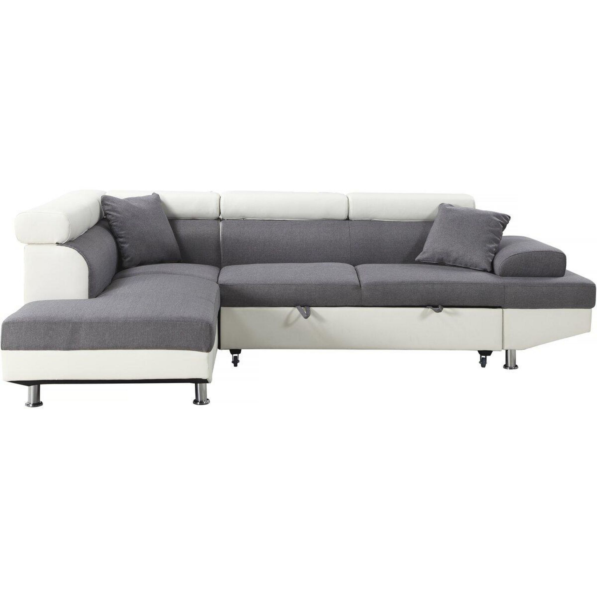 Canapé d'angle gauche convertible Sophia Luxe - 5 places - Blanc / Gris - Angle gauche - Canapé : 265 x 190.5 x 80/91 cm - Couchage : 189 x 113 x 47 cm - Tissu lin et PU.