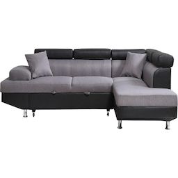 Canapé d'angle droit convertible Sophia Luxe - 5 places - Noir / Gris - Angle droit - Canapé : 265 x 190.5 x 80/91 cm - Couchage : 189 x 113 x 47 cm - Tissu Polyester et PVC.