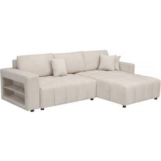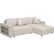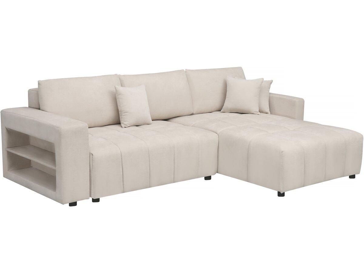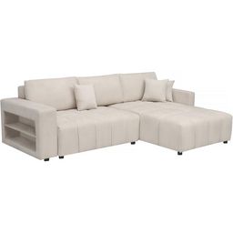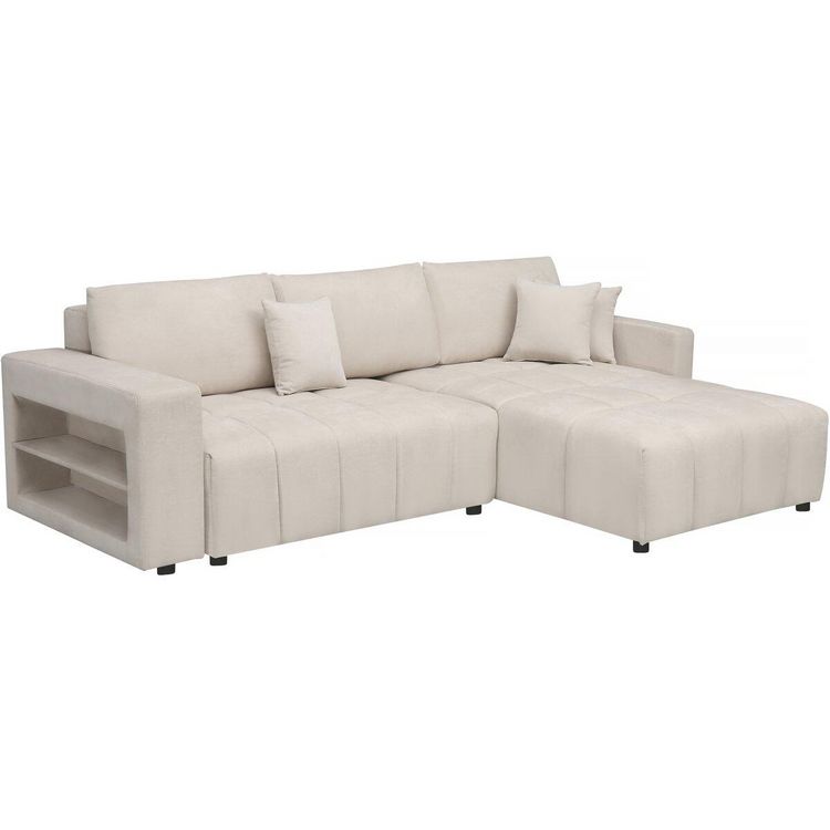 Canapé d'angle convertible et réversible avec coffre en tissu 3 places Trocadero - 3 coussins de dos - 264 x 178 x 88 cm - 3 places - Crème.