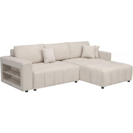 Canapé d'angle convertible et réversible avec coffre en tissu 3 places Trocadero - 3 coussins de dos - 264 x 178 x 88 cm - 3 places - Crème. Canapé d'angle tissu 3 places - Trocadero - Crème : Le canapé d'angle en tissu Trocadero est l'élégance et le confort, il offre un espace spacieux pour