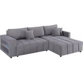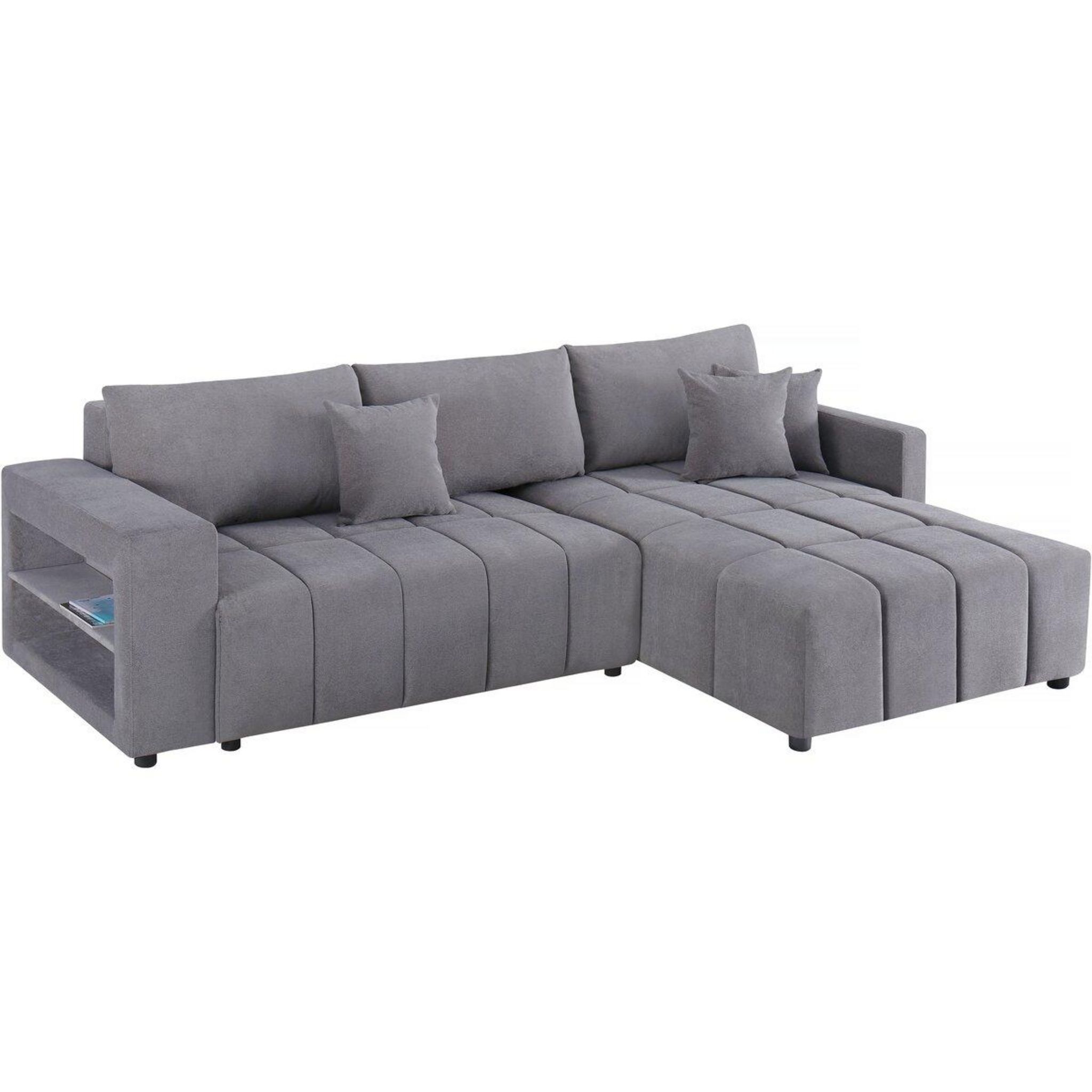 Canapé d'angle convertible et réversible avec coffre en tissu 3 places Trocadero - 3 coussins de dos - 264 x 178 x 88 cm - 3 places - Gris.