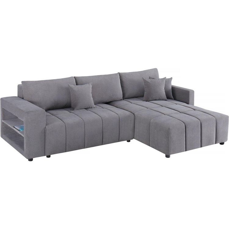 Canapé d'angle convertible et réversible avec coffre en tissu 3 places Trocadero - 3 coussins de dos - 264 x 178 x 88 cm - 3 places - Gris. Canapé d'angle tissu 3 places - Trocadero - Gris : Le canapé d'angle en tissu Trocadero est l'élégance et le confort, il offre un espace spacieux pour s