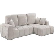 Canapé d'angle convertible droit Verneuil - Dimensions : 265 x 103/168 x 96 cm - Dimensions du couchage : 210 x 150 x 43 cm - Fonction convertible - Velours chenille - Structure en bois - Beige.