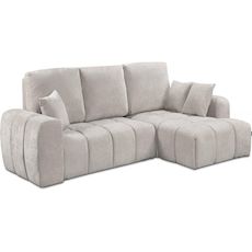 Canapé d'angle convertible droit Verneuil - Dimensions : 265 x 103/168 x 96 cm - Dimensions du couchage : 210 x 150 x 43 cm - Fonction convertible - Velours chenille - Structure en bois - Beige.Canapé d'angle droit convertible en tissu chenille Verneuil - 265 x 168 x 96 cm - BeigeLe canapé Ver