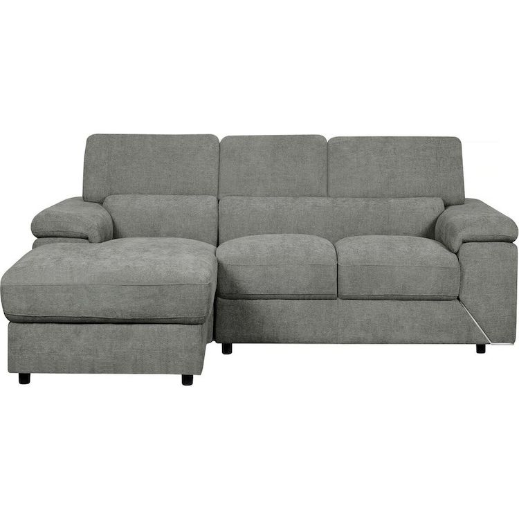 Canapé d'angle gauche en tissu chenille London - 4 places - Gris - Dimensions : 266 x 166 x 70 cm.