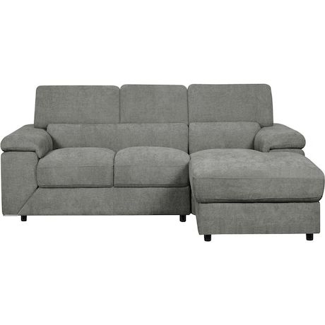 En savoir +Canapé d'angle droit en tissu chenille London - 4 places - Gris - Dimensions : 266 x 166 x 70 cm.